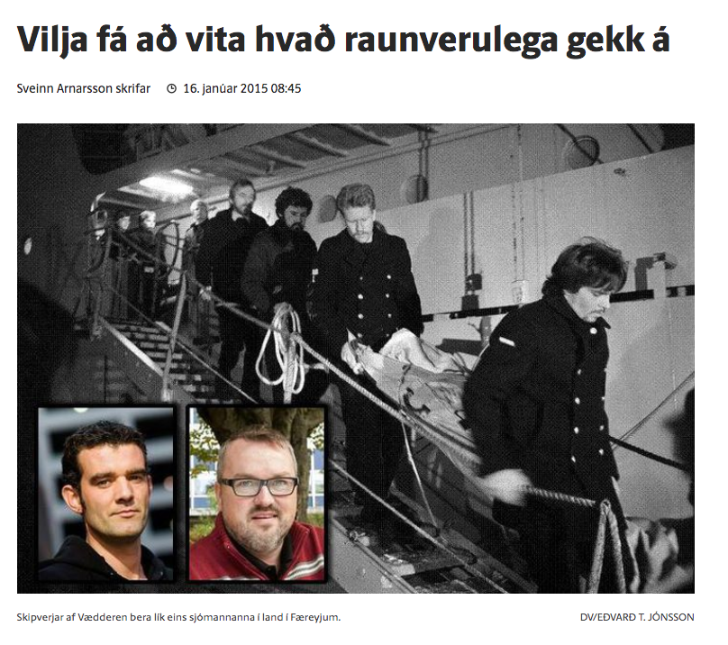 "Báturinn var í slæmu standi. Við urðum því að standa uppréttir í bátnum, sem er ekki það auðveldasta við þessar kringumstæður, stórsjór og ágjöf. En þeir sem settust stóðu ekki upp aftur," var haft eftir Jóni Snæbjörnssyni, fyrsta stýrimanni, í forsíðufrétt í Morgunblaðinu sunnudaginn 28. desember 1986. "Þetta var vissulega hrikaleg staða en við trúðum því alltaf að björgun myndi berast., Við vorum alltaf að tala saman," segir Jón og rifjar upp að reglulega hafi farið fram nafnakall í hópnum og sagði hann samstöðuna hafa haft mikið að segja. "Það var mikill léttir þegar þyrlan kom. Ég var hífður síðastur um borð en þá var ég alveg búinn að vera," sagði Jón, en danska varðskipið Vædderen hafði verið í Færeyjum þegar neyðarkallið barst. (Mbl 27. ágúst 2005)